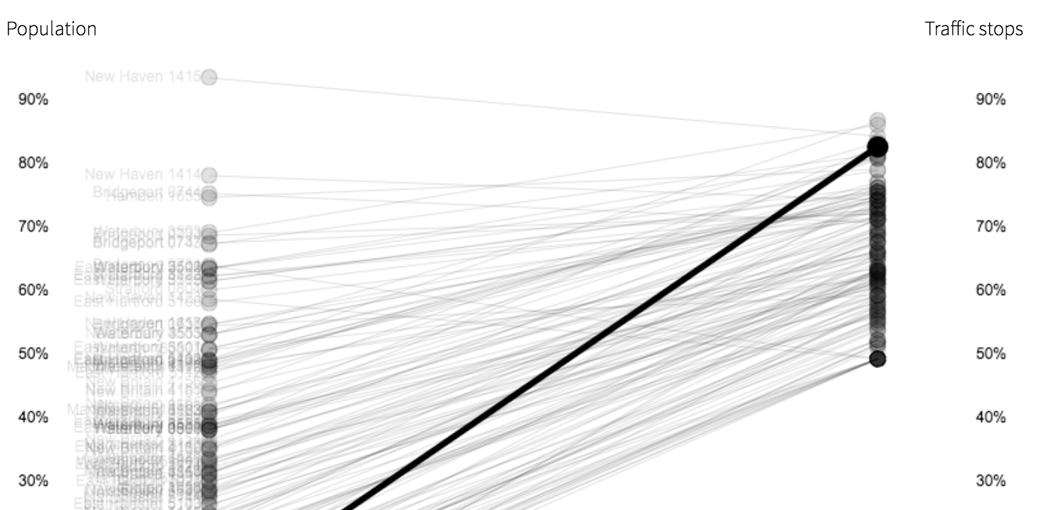 Data on Connecticut traffic stops is among the most detailed traffic stop data in the country, collected in an ambitious effort to curb racial profiling. We've put together a visual walkthrough of this data at the statewide level, department level and individual officer level.